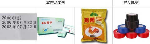 适用于:塑料薄膜(PT、PE、PVC、OPP、KT)、铝箔、饮料瓶表面打码;,塑料复合材料、塑料袋、纸(不干胶、卡片)、皮革、布表面打码;包装容器袋、塑料制品表面打码;电子元件外壳打码。